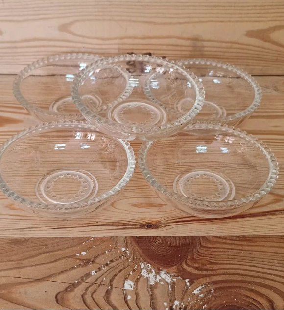 Zestaw 5 szt. miseczek, kompotierek. Wykonane ze szkła, z dekorem.