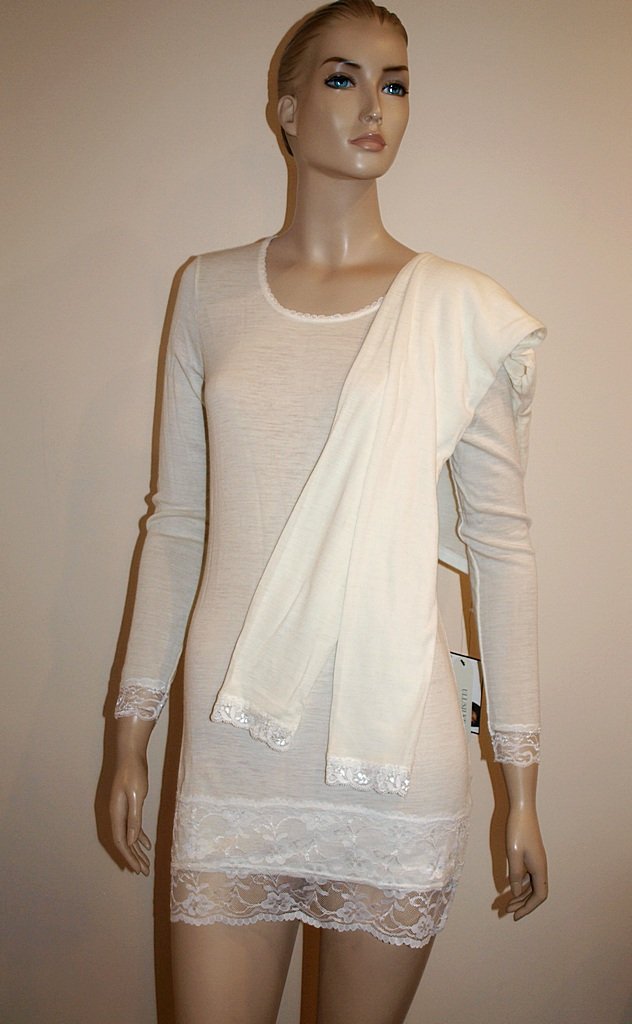 luksusowy komplet bielinizniany,nowy z metkami, marki oxford street. materiał 85% wełny 25% jedwab. Rozmiar z metki L. myślę, że bardziej na rozmiar małe 38, Kolor ecru. cena na metkach to 650 koron (chyba szwedzkich lub norweskich). Podaję wymiary mierzone na płasko;