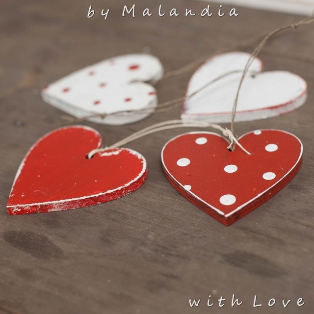 Komplet 4 świątecznych zawieszek- serc Serca są 7 cm Wszystkie zostały ręcznie pomalowane. Całość pakowana jest w ozdobny woreczek.