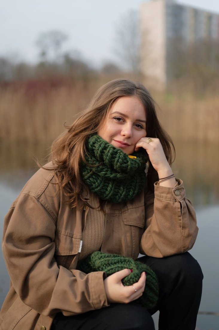Komin wełniany- idealny dla zmarzluchów- dobrze otula szyję, zakłada się go na raz bez okręcania,