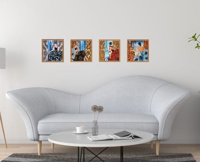 Obrazy są haftowane wysokiej jakości koralikami Preciosa Ornela na płótnie, co zapewnia artystyczną dekorację. Kompozycja składa się z 4 obrazów w tym samym stylu: "Okno do Paryża", "Okno do Londynu", "Okno do Nowego Jorku" i "Okno do Rio de Janeiro".