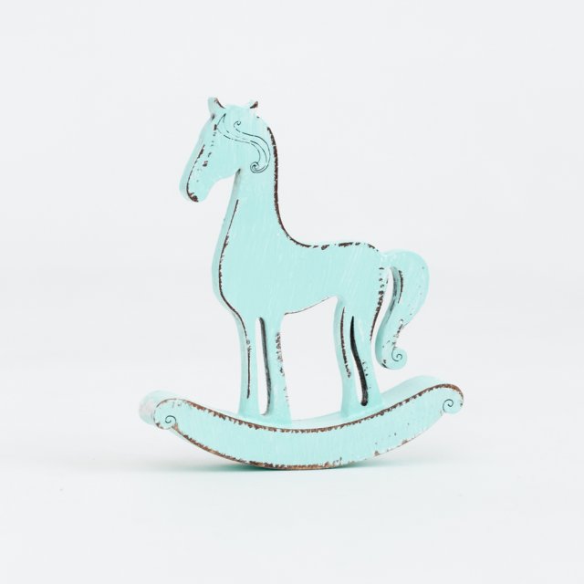 Drewniany koń na biegunach- ciekawy dodatek do wystroju wnętrza dla dużych i małych, ręcznie malowany w kolorze mięty.