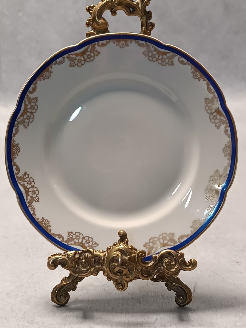 Kolorystyka: Dominują odcienie kremu, z kobaltowym obramowaniem na górnej krawędzi i złotymi zdobieniami.