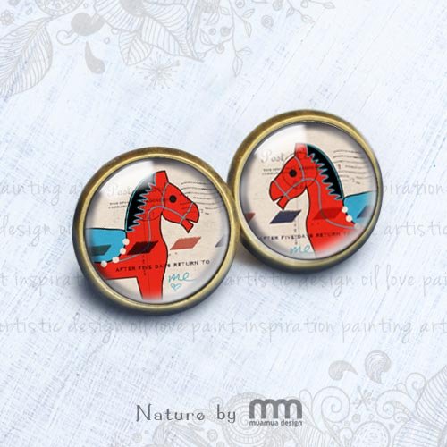 Wymiary: Grafika 12 mm, Wykorzystane materiały: baza kolczyków w kolorze antycznego brązu, miniaturka grafiki drukowana na wysokiej jakości papierze fotograficznym zatopiona pod szkiełkiem