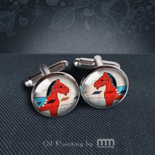 Spinki do mankietów Koniki to malutkie dzieła sztuki, które łączą nowoczesność z odrobiną antycznego powiewu. Obrazki pod szkiełkiem to obraz mojego autorstwa. Idealny prezent dla Pana od Pani ;), pasujący także do kolczyków z tym samym motywem.
