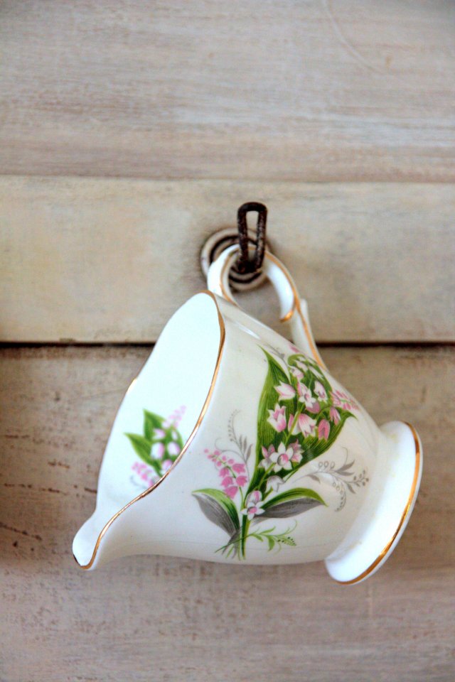 Uroczy, stary, biały, porcelanowy angielski mlecznik z cudnymi konwaliami ... Idealny do śmietanki...a także jako wazonik na małe kwiatuszki:)