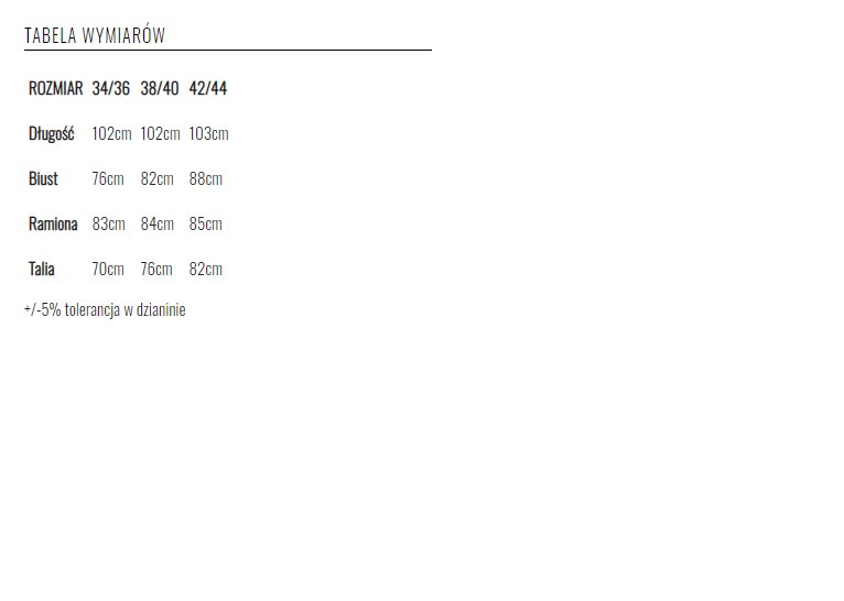 Modelka ma 170 cm wzrostu i nosi rozmiar 36