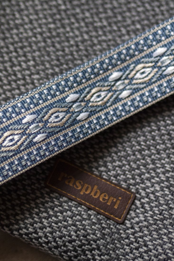 Torebka posiada regulowany kolorowy pasek i srebrne okucia.