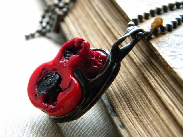 naszyjnik. koral oprawiony w miedz. stylizowany na stare srebro. wymiary 4,1cm x 2,2cm.łańcuszek z oksydowanej stali o długości 50cm.