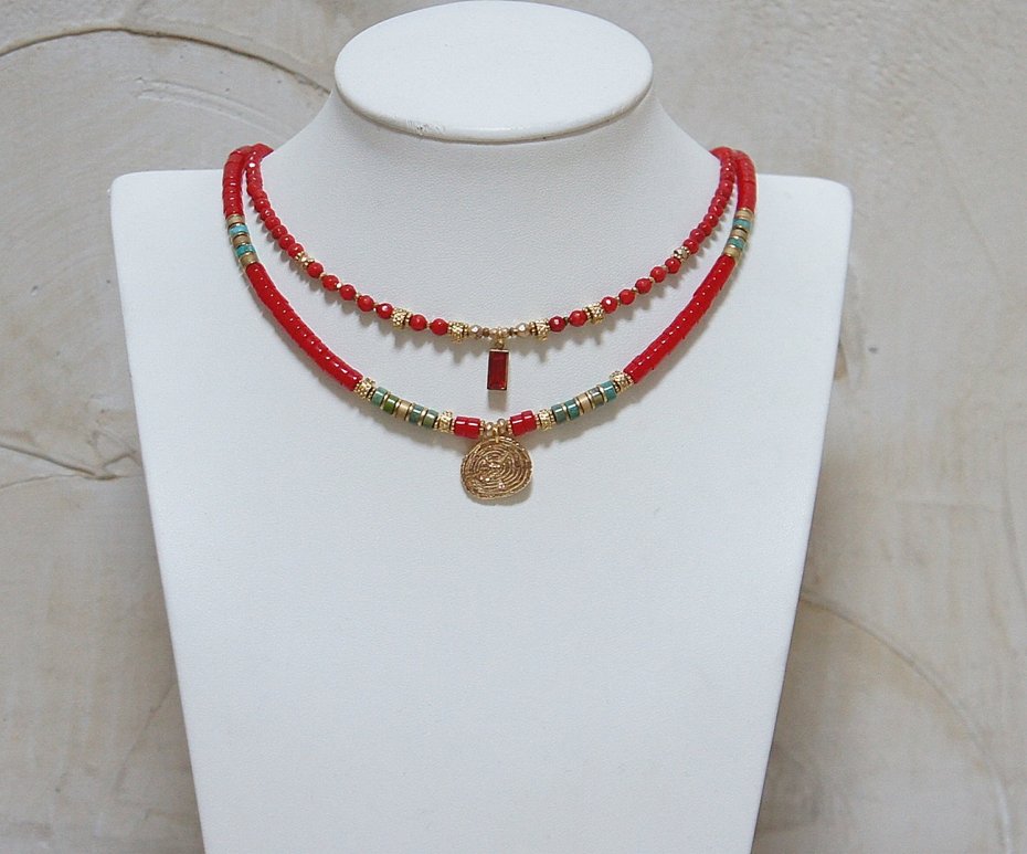 Tagi: #choker, #koral, #krótki naszyjnik, #stal szlachetna