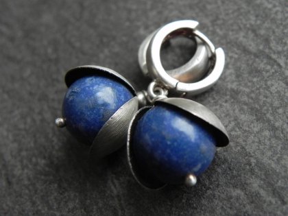 Piękne, oryginalne kolczyki wykonane z oksydowanego i satynowanego srebra próby 925 oraz korala niebieskiego (12 mm). Kolczyki zawieszone na efektownych szerokich biglach typu kajdanki. Długośc kolczyków wynosi 3,3 cm.