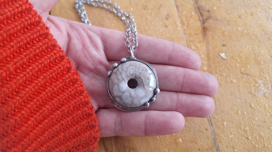 Tagi: #beżowy wisiorek, #koralowiec, #okrągły wisiorek, #wisiorek z koralowcem