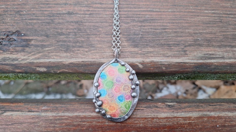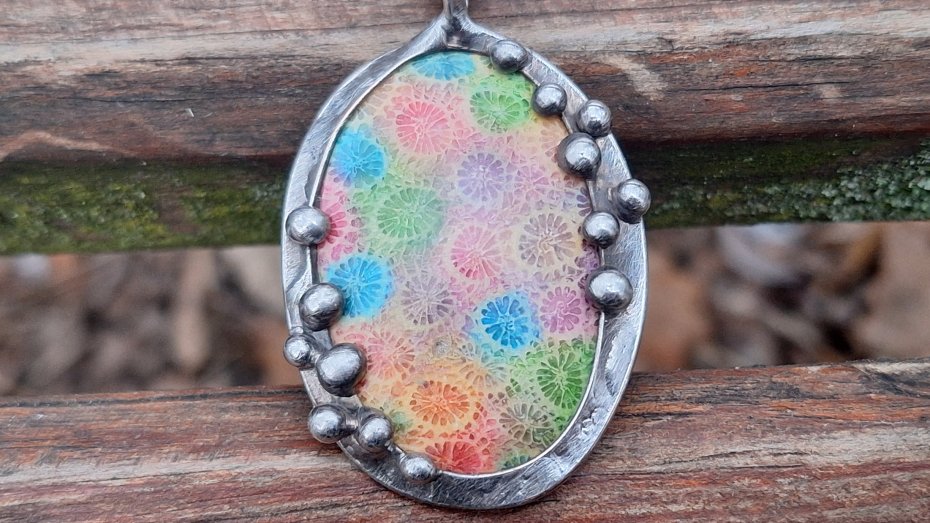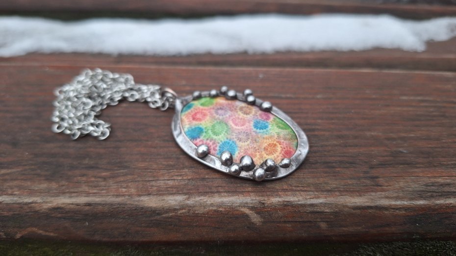 Tagi: #kolorowy wisiorek, #koralowiec, #okrągły wisiorek, #wisiorek z koralowcem