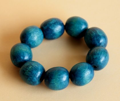 Drewniane korale w ślicznym odcieniu. Korale są drewniane, barwione, zawieszone na gumce. Dł bez rozciągania: ok 16 cm