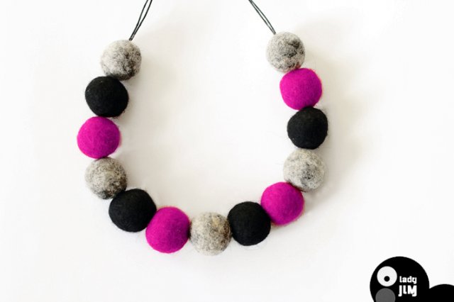 KORALE Z FILCU. SZARE KULE I FUKSJA. FILC.