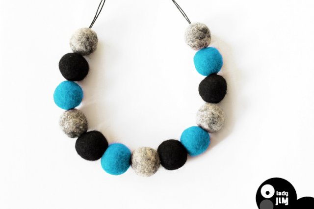 4.  > Korale z filcu. Szare kule i turkus. Filc. (nr 4733472)