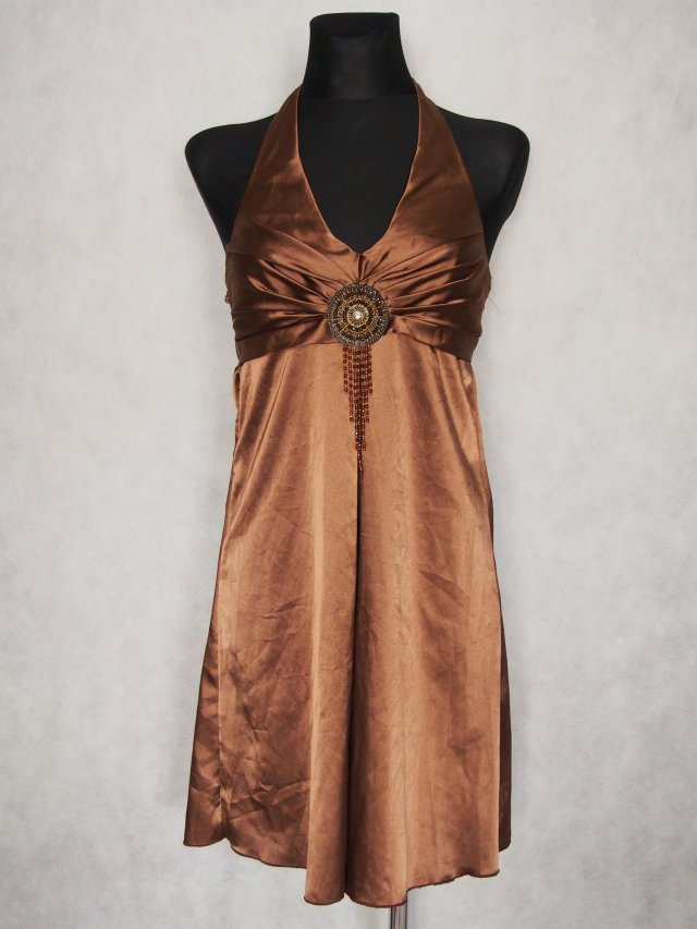 Sukienka z koralikową mandalą. Zapinana na szyi.