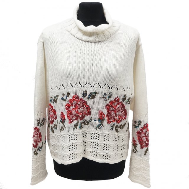 Uroczy sweterek w róże ozdobiony cekinami - nic dodać, nic ująć.