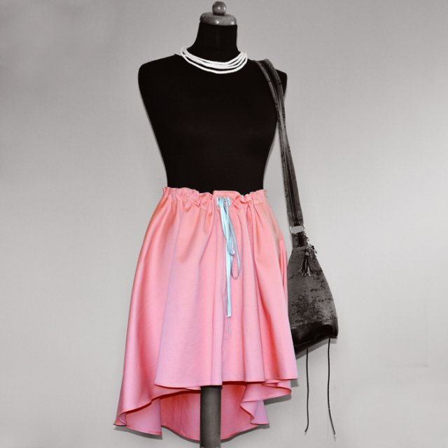 Spódniczka wykonana została z pięknej bawełny satynowej w kolorze kolarowym . Cięta z koła, z podszewką w kolorze złotym, tył nieco dłuższy od przodu, świetnie się prezentuje. Wiązana w pasie (możliwość regulacji) satynową wstążeczką. Rozmiar M (długość min. 44 cm, długość max. 65 cm)
