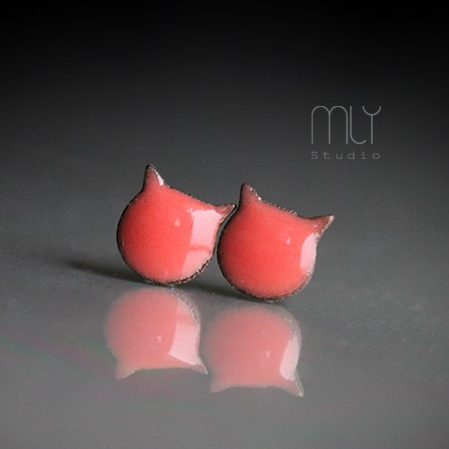 Ceramiczne kolczyki w formie sztyftów, ręcznie wykonane z delikatnej gliny kamionkowej, jednostronnie szkliwione różowo czerwonym szkliwem w odcieniu koralowym o subtelnym połysku, na antyalergicznych sztyftach w kolorze srebrnym..Średnica ok. 11mm.. Polecam