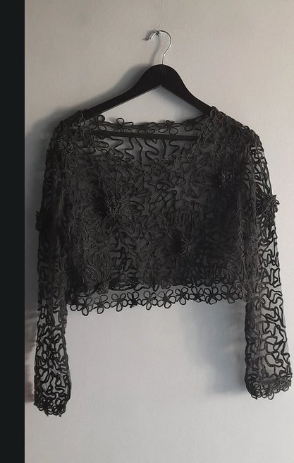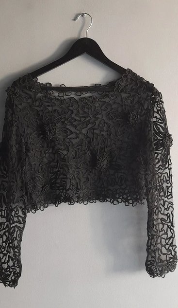 Zjawiskowa bluzka , efektowna, unikatowa, tiul z aplikacjami tworzącymi piękny efekt, stan idealny, długość 40 szerokość pod pachami ok 53x2/ lekko się naciąga