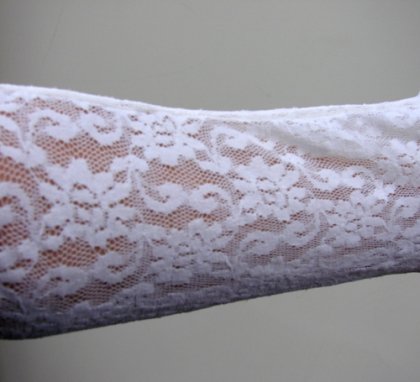 getry z białej elastycznej koronki