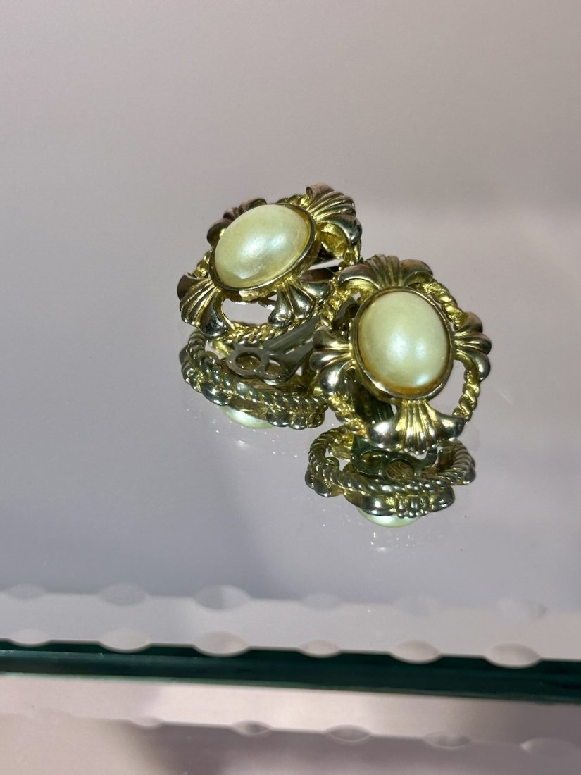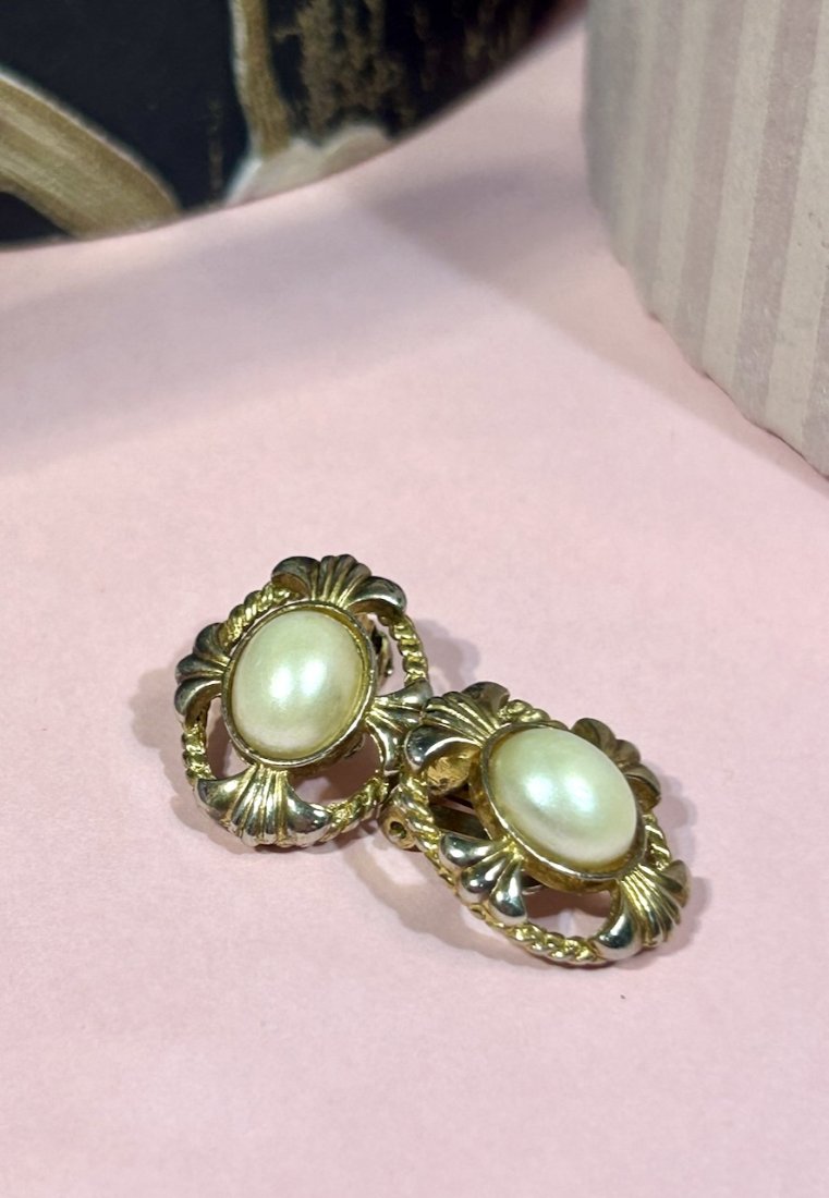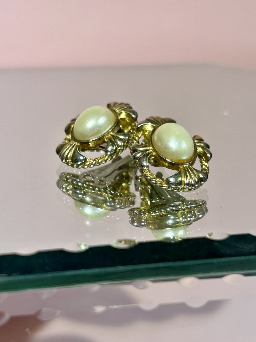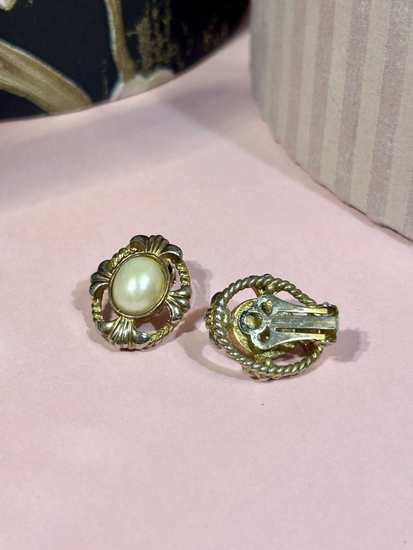 Tagi: #eleganckie klipsy vintage, #klipsy wizytowe z perłami, #klipsy z perłą, #klipsy złocone 70s