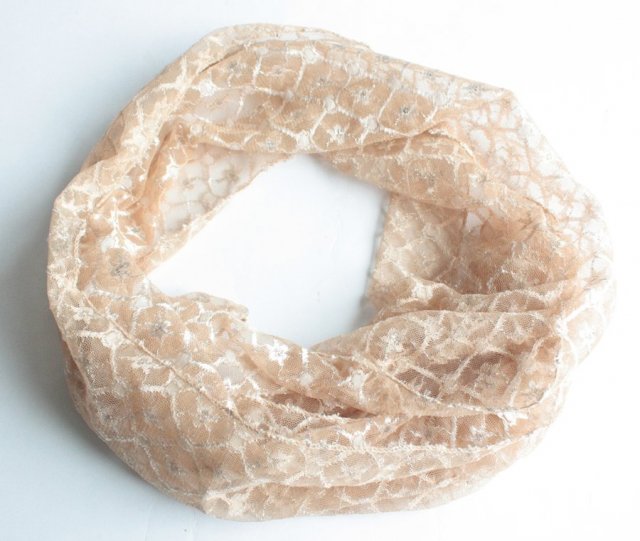 Koronkowy szal z subtelnym połyskiem.