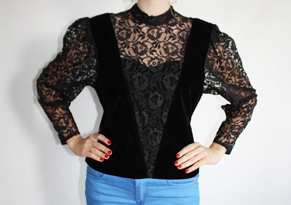 Czarna niezwykła bluzka zapinana z tyłu na guziczki.