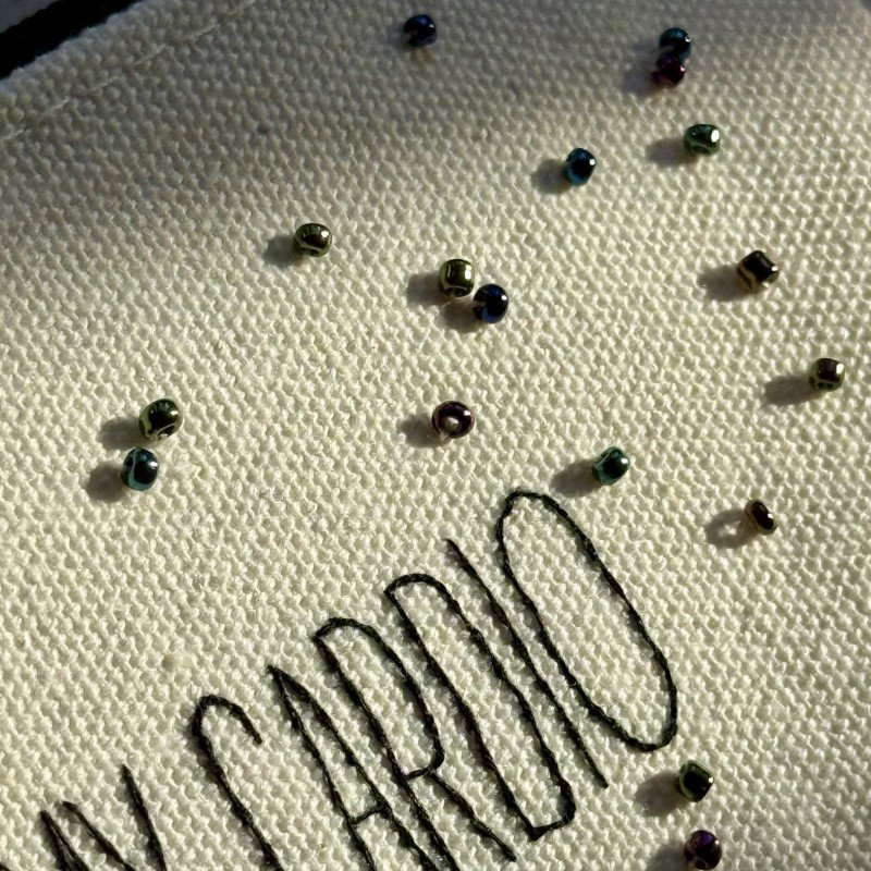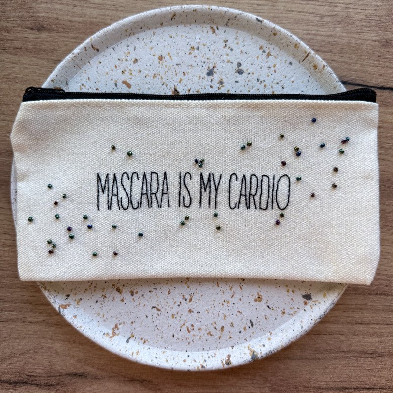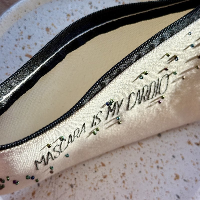 Ta kosmetyczka z ręcznie haftowanym, żartobliwym napisem to mały dodatek, który wywołuje uśmiech za każdym razem, gdy po nią sięgasz. Dodatkowego uroku dodają drobne koraliki naszyte ręcznie, które subtelnie połyskują i sprawiają, że każda sztuka jest jeszcze bardziej wyjątkowa.