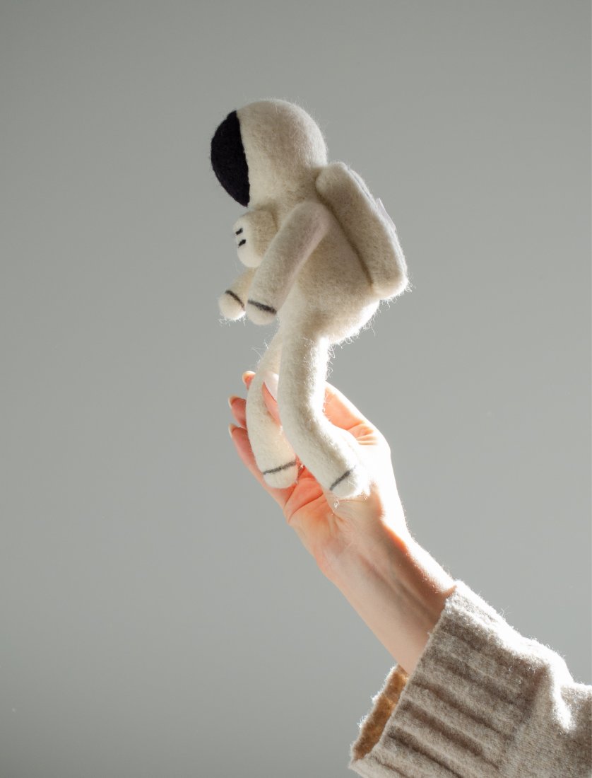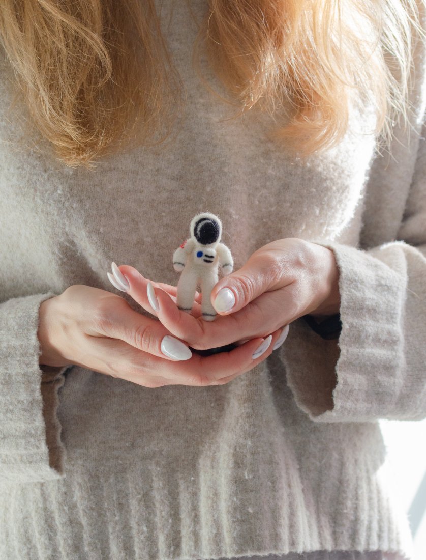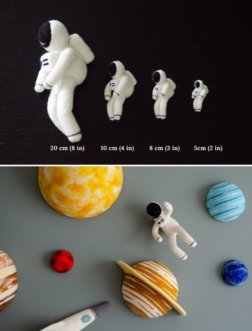 Filcowy kosmonauta to wyjątkowy dodatek do zestawu planet 3D albo samodzielna ozdoba w pokoju dziecka. Lekki, miękki i bezpieczny – można go zawiesić na ścianie lub pod sufitem, tworząc kosmiczną atmosferę w pokoju malucha.