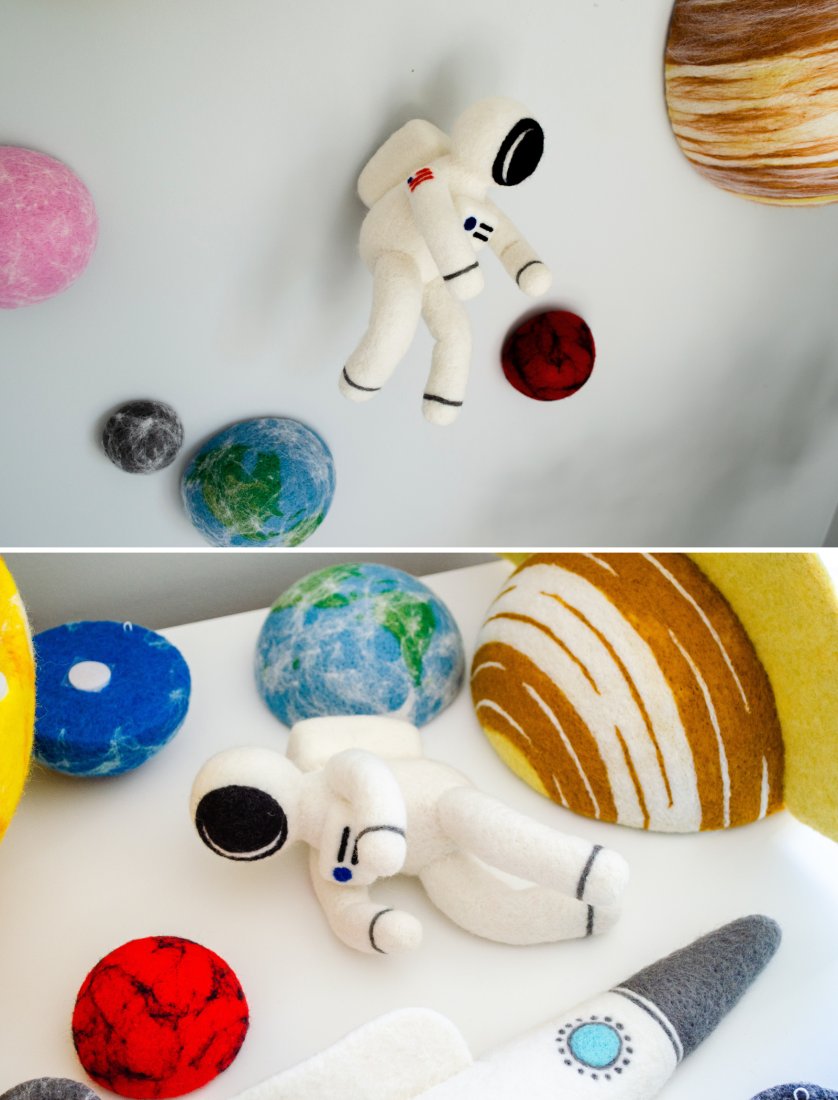 Kosmonauta z filcu • Zawieszka na ścianę i sufit do pokoju dziecka.