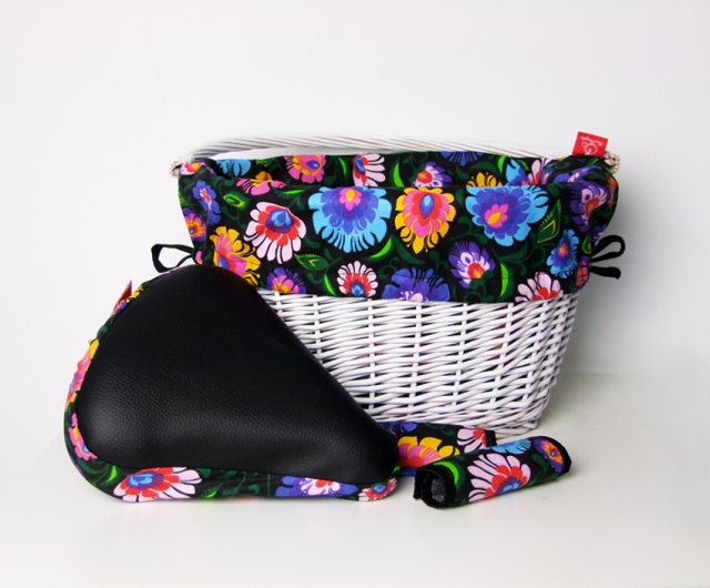 pokrowiec na siodełko+rączki w takim samym kolorze/wzorze materiału jak koszyk wraz z wkładem