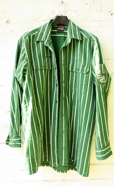 Zielona koszula w biale paski, KANSAS,40/41, 100% COTTON,stan bdb.