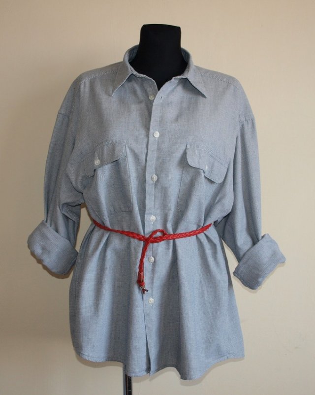 Luźna, sportowa koszula marki Claiborne, ze świetnej drukowanej w drobny wzorek bawełny. Koszula jest męska, ale może fajnie wyglądać jako damski oversize. Stan bardzo dobry. Rękaw wszyty niżej. Rozmiar z metki XL. Podaję wymiary mierzone na płasko;