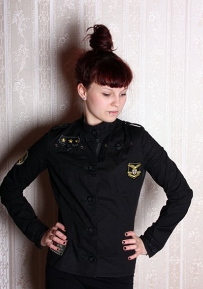 Czarna koszula z aplikacjami. rozmiar S,osoba na ktorej wyk.zdj.nosi rozm.S,,,,,,,,,,,,#K