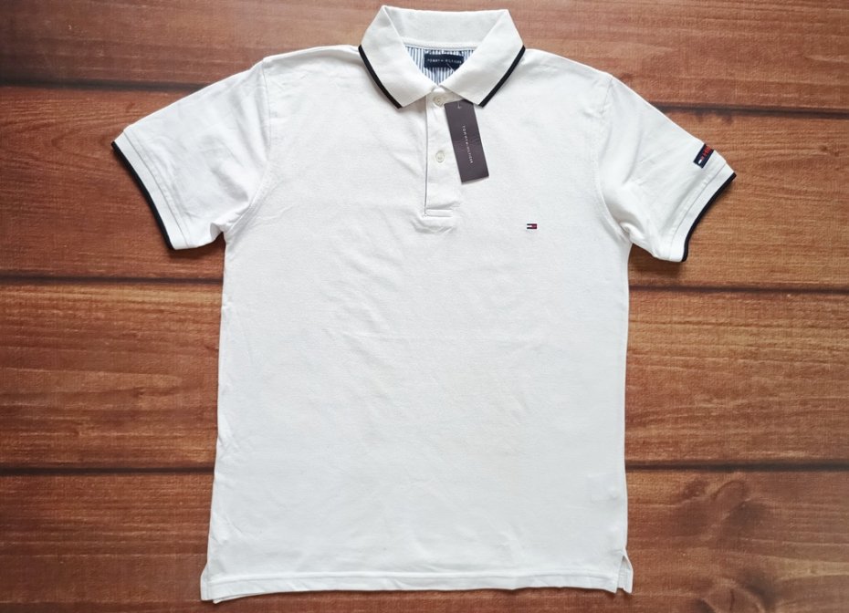 Nowa koszulka polo, biała logowana, bawełna.