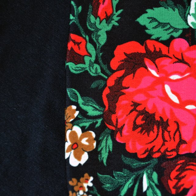 Koszulka wykonana została z czarnej elastycznej dzianiny, rękawki z pięknego materiału w kwiaty. Prosty, dopasowany, wygodny krój. Rozmiar S