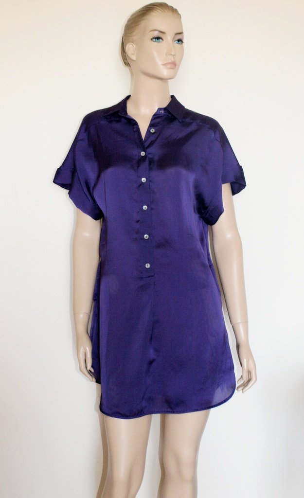 Koszula/tunika marki zara w fioletowym kolorze (nie jest niebieski). Materiał 100% poliester. tył dłuższy, kieszenie do wewnątrz. stan bardzo dobry. Rozmiar z metki s, Na manekinie o rozmiarze 38. Podaję wymiary mierzone na płasko;