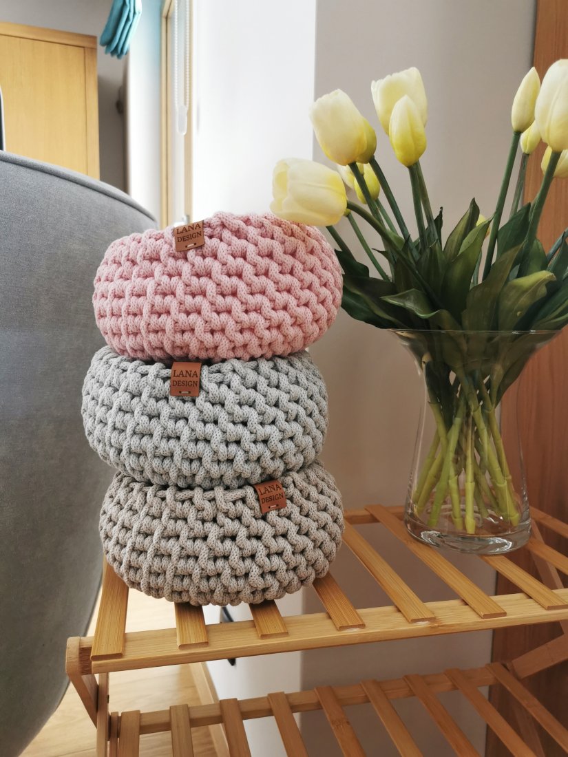 Eleganckie bawełniane kosze do przechowywania to praktyczny i piękny dodatek, który pomaga uporządkować codzienne drobiazgi, a jednocześnie stanowi subtelną dekorację wnętrza. Ręcznie wykonane z wysokiej jakości sznurka bawełnianego koszyczki są trwałe, miękkie w dotyku i przyjemne w użytkowaniu. Naturalny materiał oraz staranne wykonanie sprawiają, że doskonale pasują do wnętrz w stylu boho, skandynawskim, minimalistycznym oraz naturalnym.