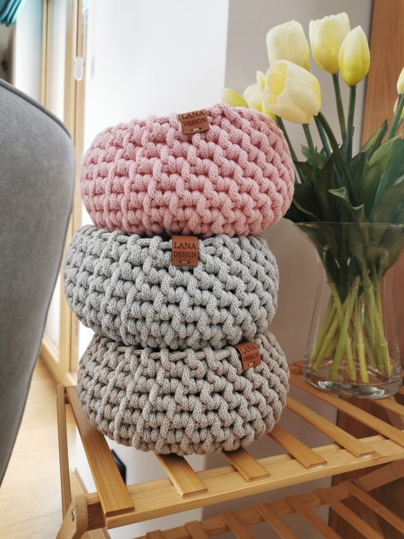 Eleganckie bawełniane kosze do przechowywania to praktyczny i piękny dodatek, który pomaga uporządkować codzienne drobiazgi, a jednocześnie stanowi subtelną dekorację wnętrza. Ręcznie wykonane z wysokiej jakości sznurka bawełnianego koszyczki są trwałe, miękkie w dotyku i przyjemne w użytkowaniu. Naturalny materiał oraz staranne wykonanie sprawiają, że doskonale pasują do wnętrz w stylu boho, skandynawskim, minimalistycznym oraz naturalnym.