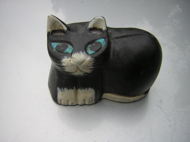 Spora drewniana kocia figurka. Ręcznie malowana i prawdopodobnie tak też wykonana. Urocza. Wykończenie satynowo - matowe. . Do kolekcji I na prezent.