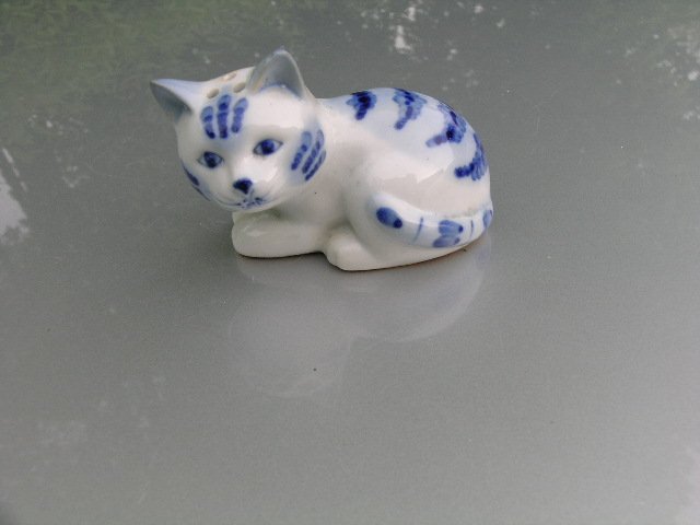 Biała na błyszcząco szkliwiona z niebieskościami,dziurkami i plasiczaną z ayczką od spodu. Dla Kociarza,do użytku i ozdoby :)