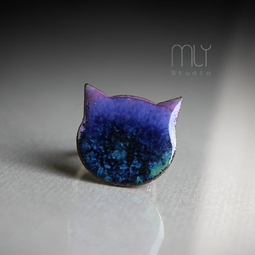 Efektowny pierścień z ceramicznym oczkiem, ręcznie wykonanym z gliny kamionkowej, szkliwionym mieszanką błyszczących błękitnych i fioletowych szkliw z efektem plamek. Obrączka regulowana w kolorze starego złota, średnica oczka ok 18mm. Polecam