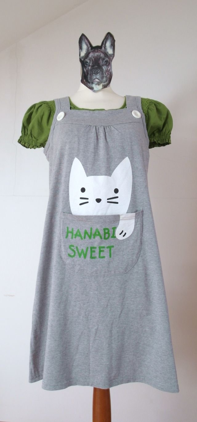 Słodka sukienka bawełniana z dużą kieszenią i kotem rozm.M
