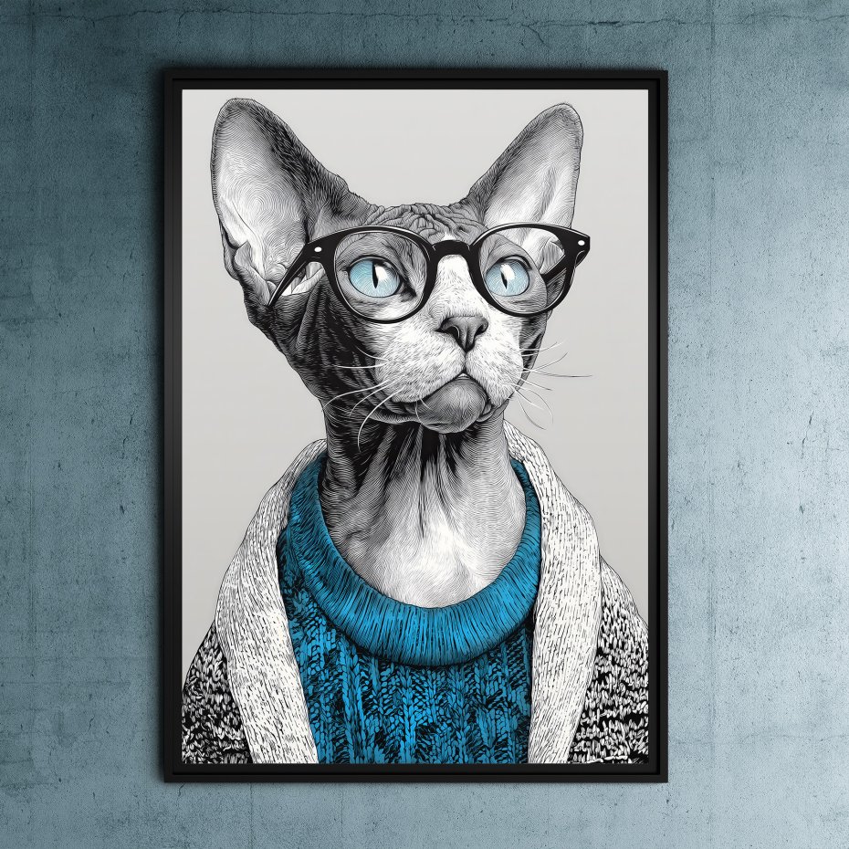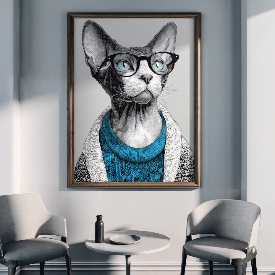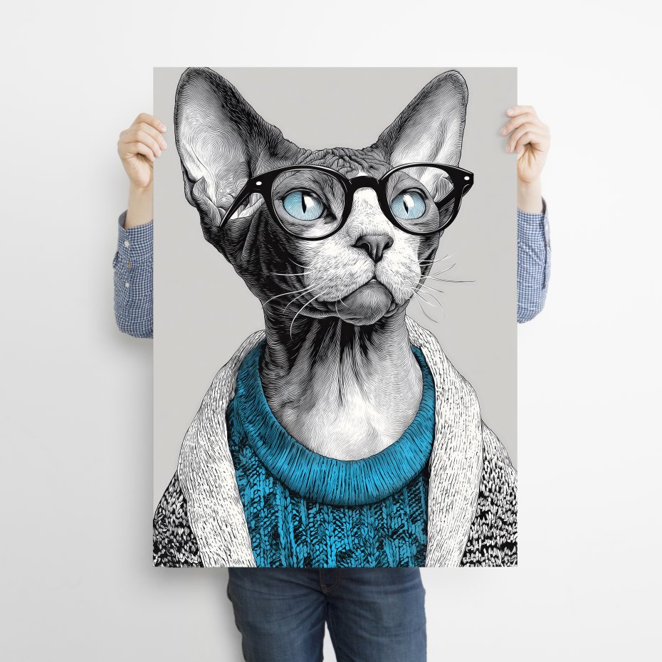 Kot w niebieskim swetrze - grafika na plakacie na A3