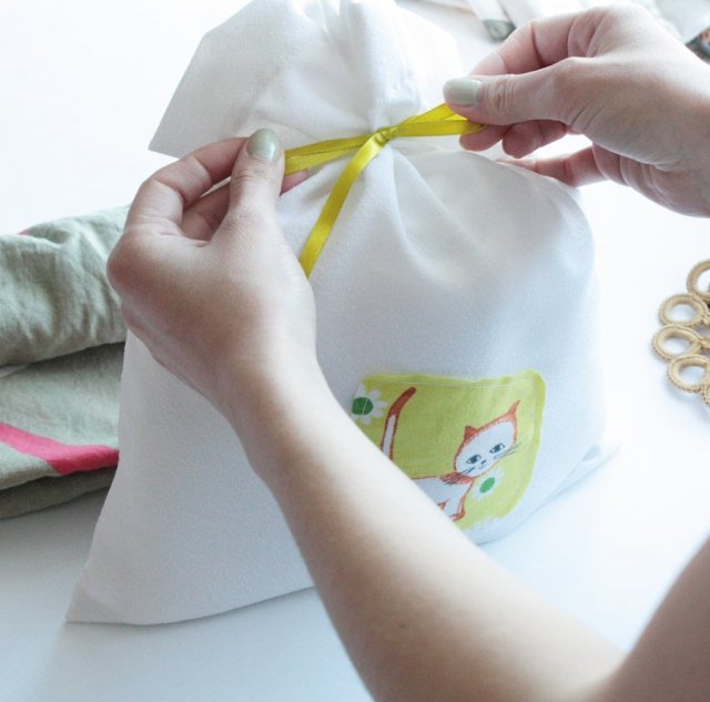 W ręcznie wykonanym przez mnie woreczku znajdują się przynajmniej trzy rzeczy-niespodzianki. To unikatowe dodatki vintage, więc rozmiar (wreszcie) nie gra roli! Co najmniej jedna rzecz wykonana jest z jedwabiu. Chusty i szale to mój znak firmowy, więc w woreczku również ich nie zabraknie. Ponadto można spodziewać się [sic!] biżuterii, torebek, pasków, saszetek, kosmetyczek, drobiazgów do domu i wielu wielu innych rzeczy.