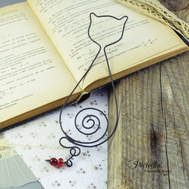 Oryginalna zakładka do książki wykonana w całości ręcznie. Kuta z metalu ozdobiona szklanymi koralikami. Zenon wraz z ogonem ma wysokość ok. 19 cm. W najszerszym miejscu ok. 5,5 cm.