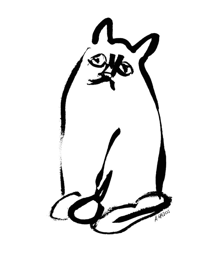 autorska ilustracja A4 przedstawiajaca śmiesznego kotka