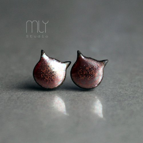 Efektowne kolczyki w formie sztyftów, ręcznie wykonane z delikatnej czekoladowobrązowej gliny kamionkowej, jednostronnie szkliwione metalicznym brązowo złotym szkliwem, na antyalergicznych sztyftach.długość elementu ceramicznego ok. 11mm, Polecam